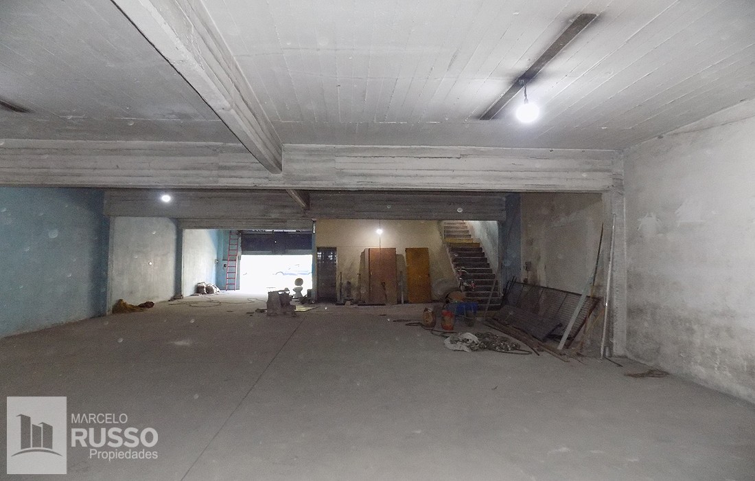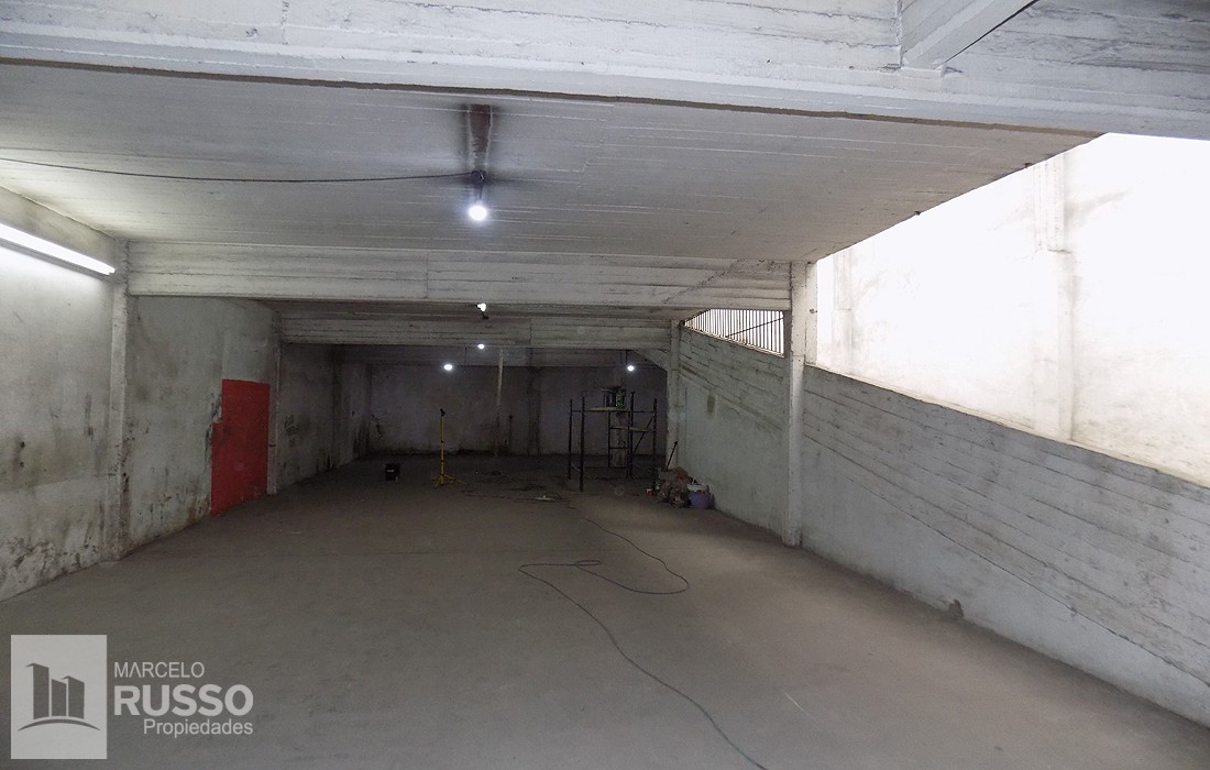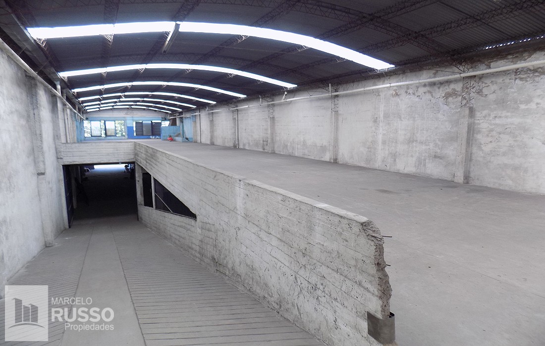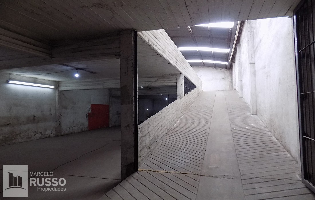 1º Piso: Rampa de acceso vehicular a Planta Alta, Salón de 500 Mts², con techo parabólico.